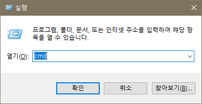 - Windows키 + R(Run 실행) + cmd