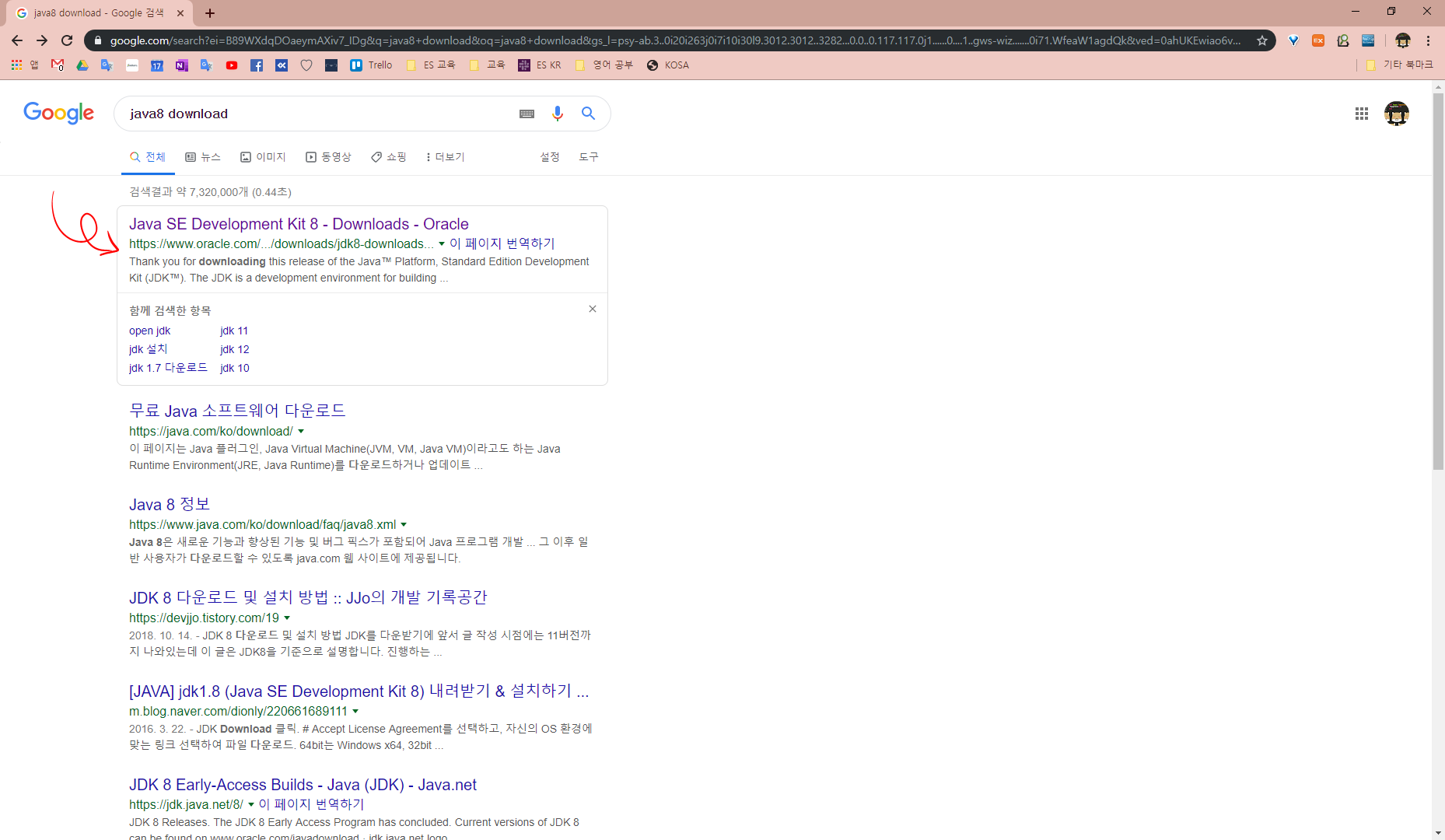 "Java8 download"라고 구글링해주면 바로 첫번째 나오는 Oracle 사이트를 들어가줍니다.