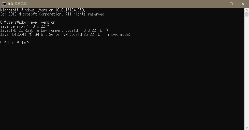 설치 후에는 java라는 명령어를 읽을 수 있고 그 뒤 '-version'이라는 상세 명령어가 붙어 요청을 날려보니
