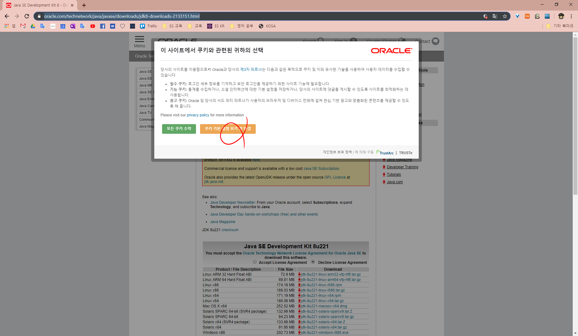 2. 설치 전 Oracle사이트 내 쿠키 수락