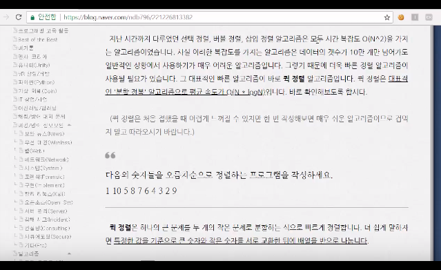 퀵 정렬 방식(알고리즘)으로 푸는 방법