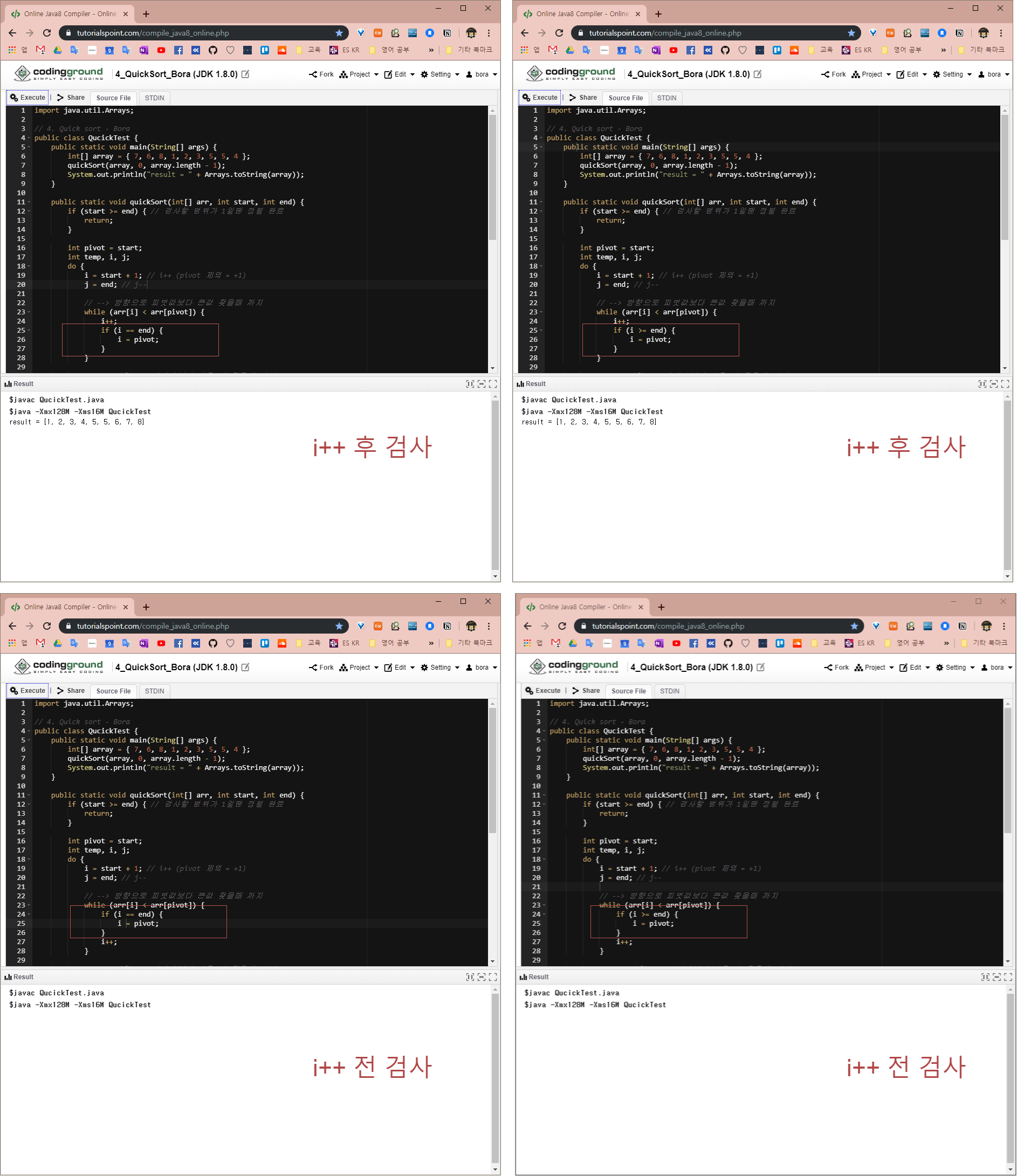 퀵 정렬때문에 하루 반나절은 보낸거같네요...!