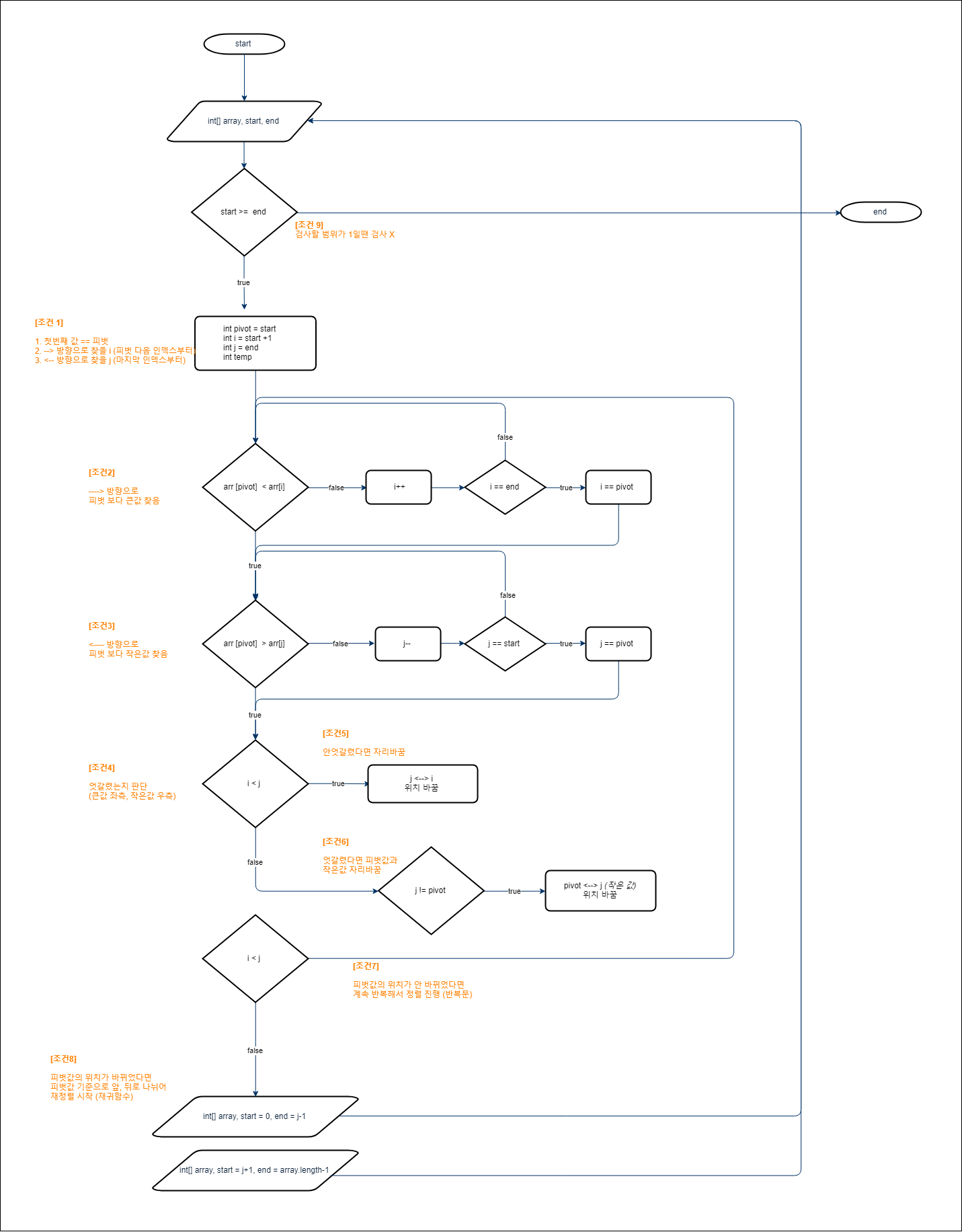퀵 정렬 알고리즘 조건과 순서도