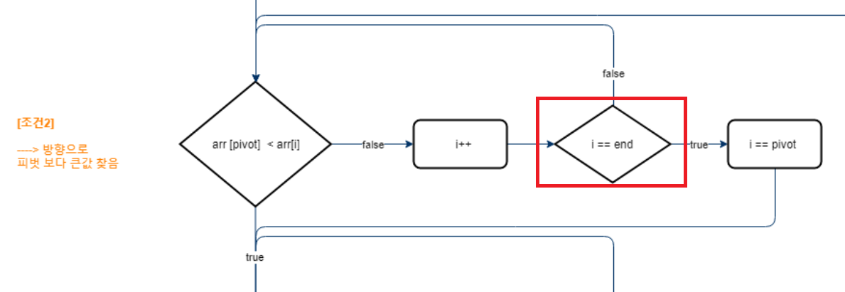 // <-- 방향으로 피벗값보다 작은 값 찾을때 까지